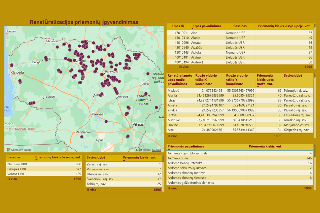 Aplinkos apsaugos agentūros Hidrografinio tinklo skyriaus specialistai parengė skaitmeninį žemėlapį, kuriame pažymėtos Lietuvos upėse ir upeliuose įrengtos švelniosios renatūralizacijos priemonės, skirtos upių ir upelių ekologinės būklės pagerinimui.